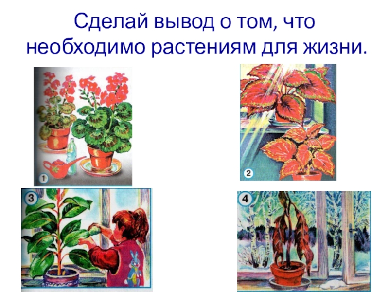Слайд 19Сделай вывод о том, что необходимо растениям для жизни.