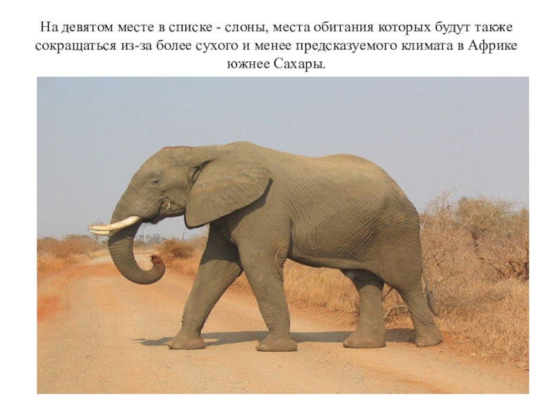 На девятом месте в списке - слоны, места обитания которых будут