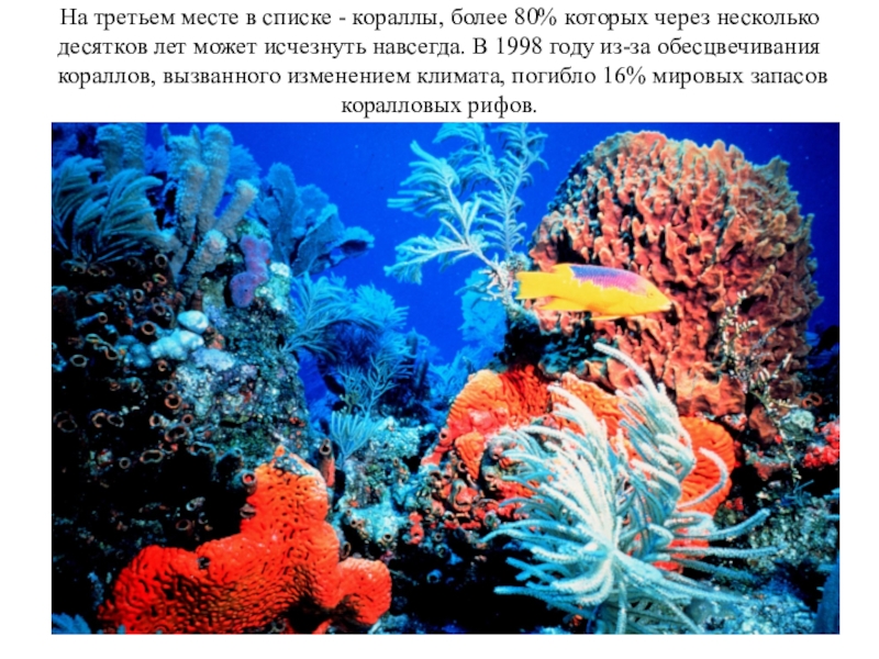 Слайд 5На третьем месте в списке - кораллы, более 80% которых через