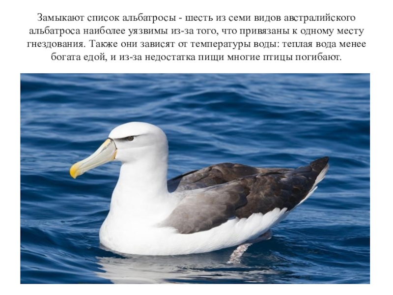 Слайд 12Замыкают список альбатросы - шесть из семи видов австралийского альбатроса наиболее