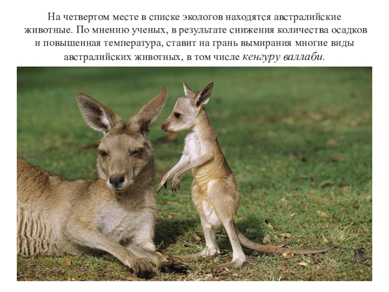 Слайд 6На четвертом месте в списке экологов находятся австралийские животные. По мнению