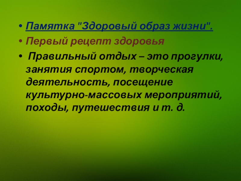 занятия спортом, творческая деятельность, посещение культурно-массовых мероприятий, походы, путешествия и т. д.