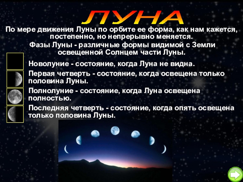 По мере движения Луны по орбите ее форма, как нам кажется,