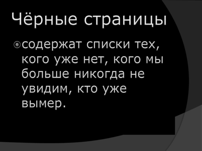 Слайд 8Чёрные страницы