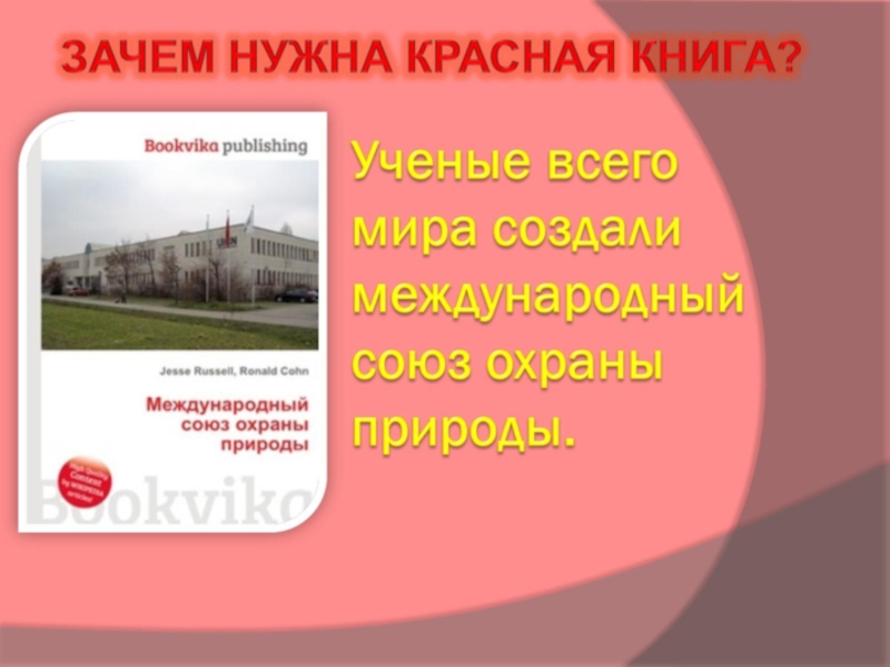 Ученые союза создали списки животных и растений, которым нужна помощь. Эти списки поместили в «Красную книгу».
