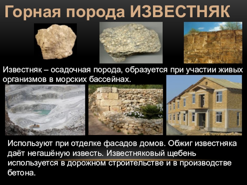 Используют при отделке фасадов домов. Обжиг известняка даёт негашёную известь. Известняковый щебень используется в дорожном строительстве и в производстве бетона.