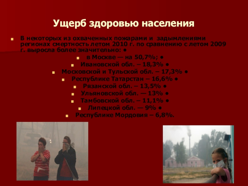 В некоторых из охваченных пожарами и задымлениями регионах смертность