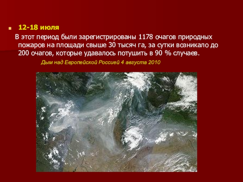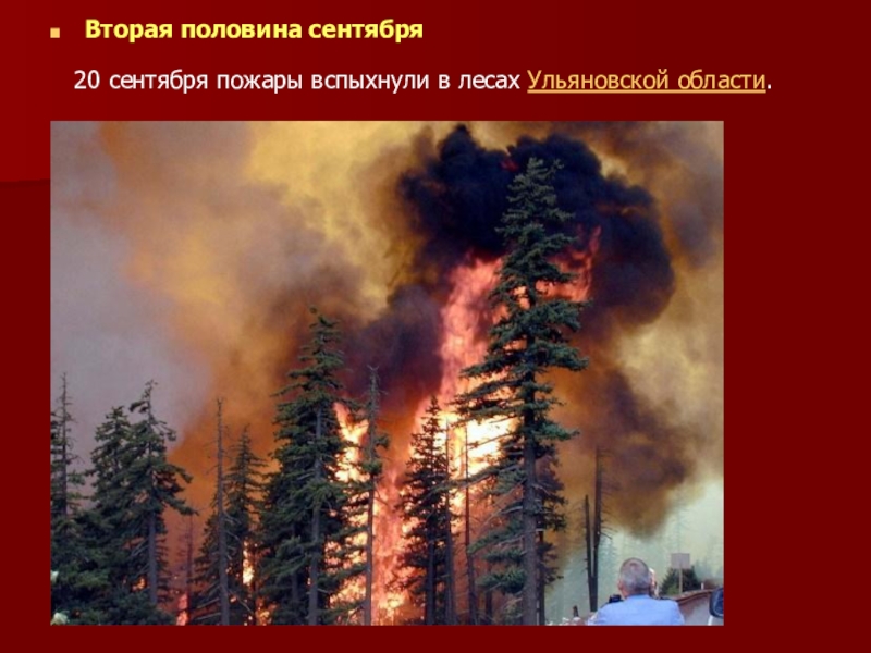 Слайд 13К концу августа специалистам удалось справиться с сильнейшими природными пожарами, которые