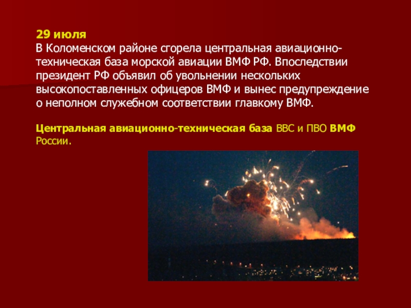 РФ. Впоследствии президент РФ объявил об увольнении нескольких высокопоставленных офицеров ВМФ и вынес предупреждение о неполном служебном соответствии главкому ВМФ.