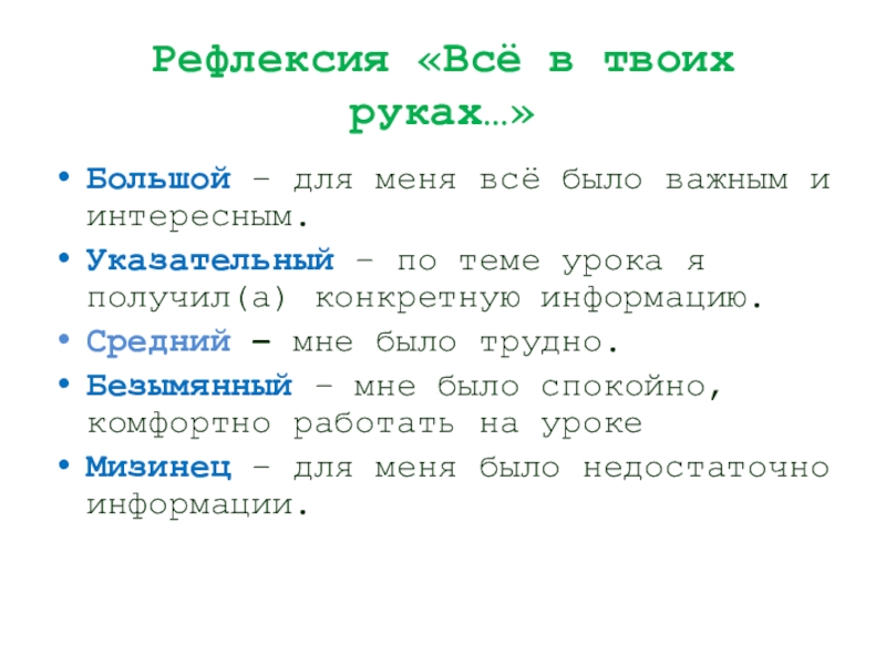 Слайд 26Рефлексия «Всё в твоих руках…»