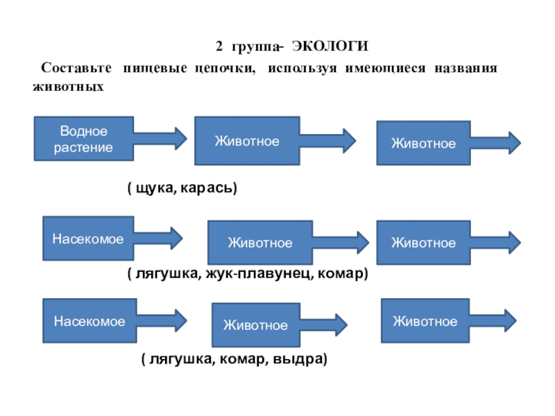Составьте пищевые цепочки, используя имеющиеся названия животных