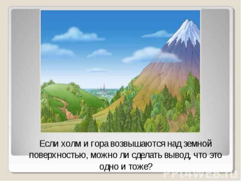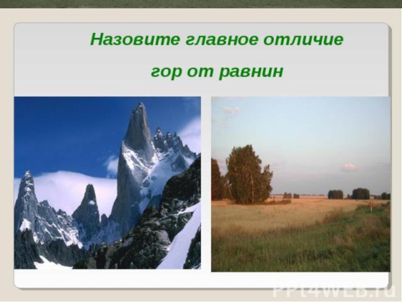 Равнины и горы. Холмы и овраги. Красота гор.