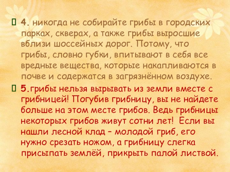 4. никогда не собирайте грибы в городских парках, скверах, а также