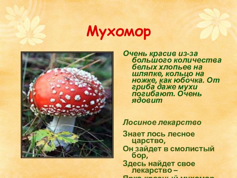 ножке, как юбочка. От гриба даже мухи погибают. Очень ядовит