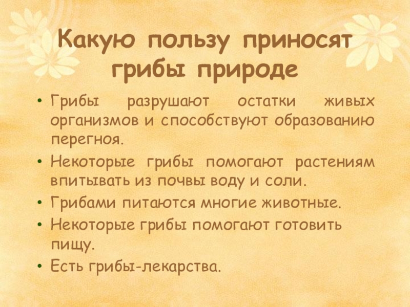 Некоторые грибы помогают растениям впитывать из почвы воду и соли.