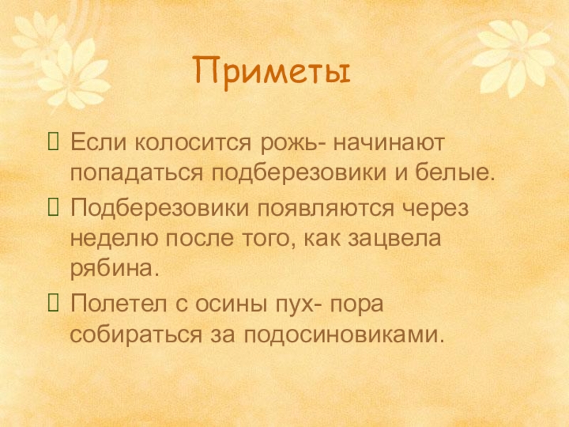 Если колосится рожь- начинают попадаться подберезовики и белые.
