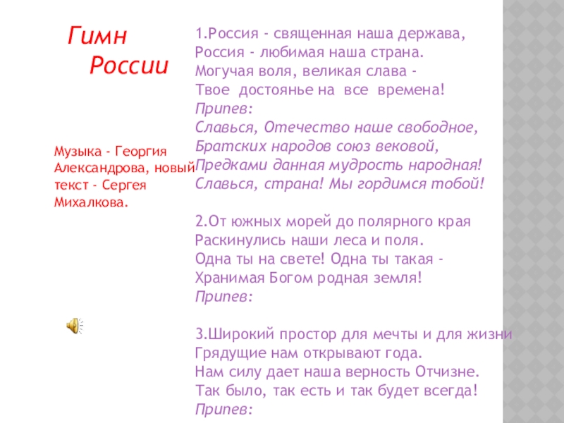 Музыка - Георгия Александрова, новый текст - Сергея Михалкова.