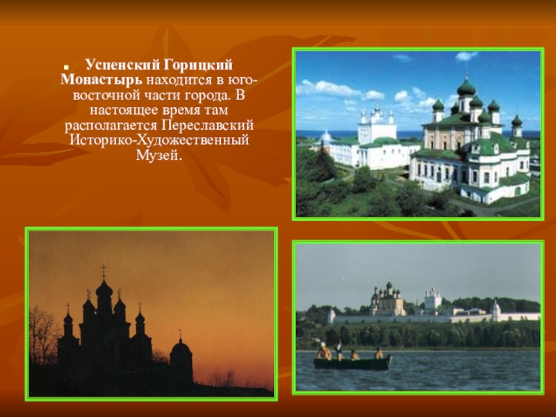 Слайд 9Успенский Горицкий Монастырь находится в юго-восточной части города. В настоящее время там