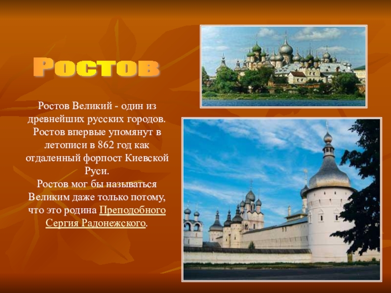 Ростов Великий - один из древнейших русских городов. Ростов впервые