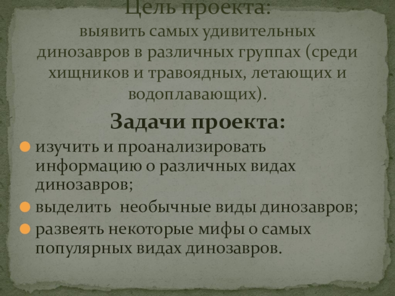выявить самых удивительных динозавров в различных группах (среди хищников и травоядных, летающих и водоплавающих).