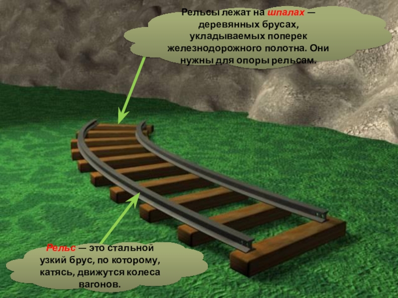 Рельс — это стальной узкий брус, по которому, катясь, движутся колеса вагонов.
