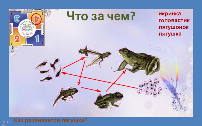 Что за чем?Как развивается лягушка?икринкаголовастиклягушоноклягушка