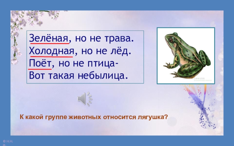 Зелёная, но не трава. Холодная, но не лёд. Поёт, но не птица- Вот такая небылица.К какой группе
