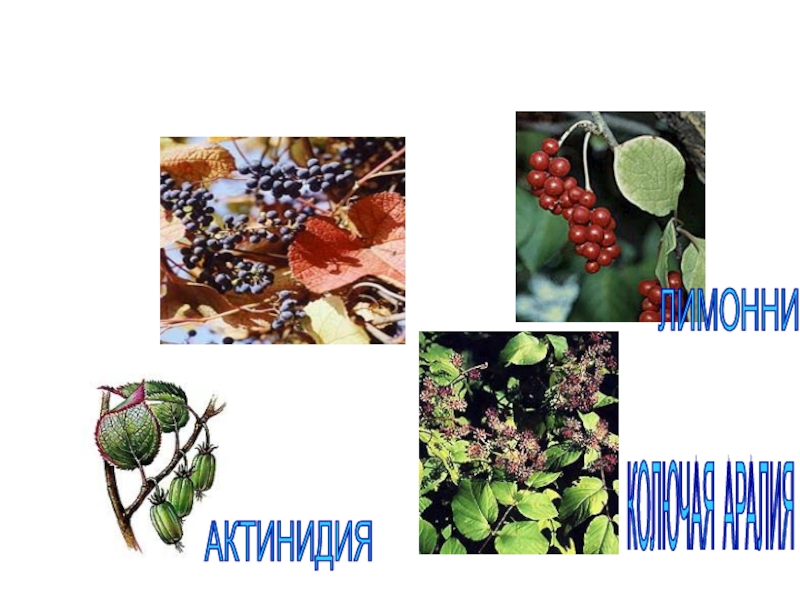 АМУРСКИЙ ВИНОГРАДКОЛЮЧАЯ АРАЛИЯ ЛИМОННИК АКТИНИДИЯ