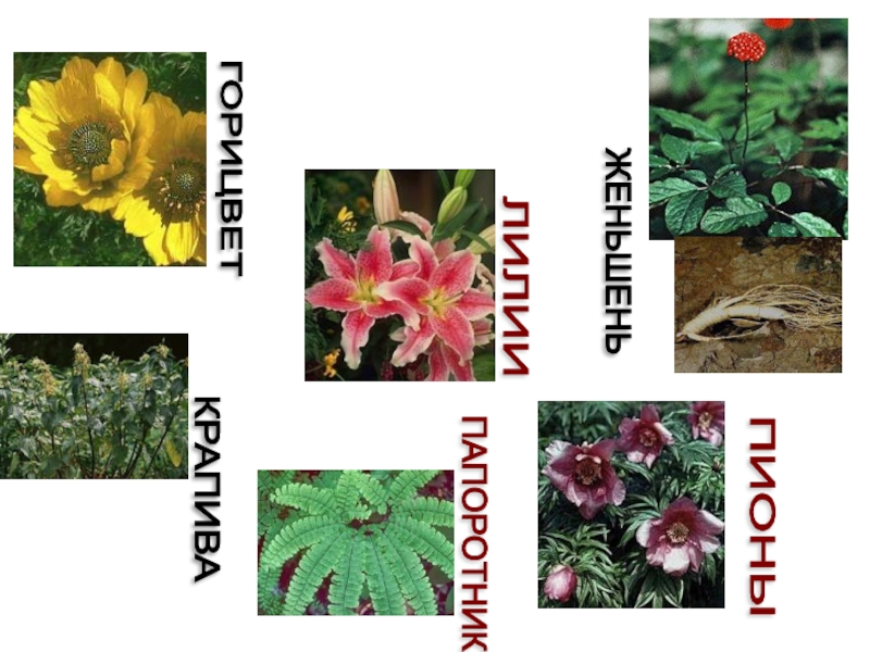 ГОРИЦВЕТ ЖЕНЬШЕНЬ ЛИЛИИ ПИОНЫ КРАПИВА ПАПОРОТНИК