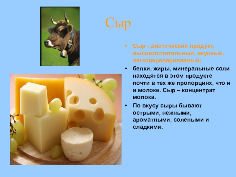 Сыр - диетический продукт, высокопитательный, вкусный, легкоперевариваемый;