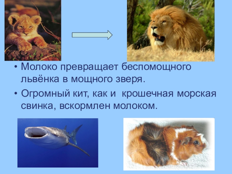 Слайд 9Молоко превращает беспомощного львёнка в мощного зверя.
