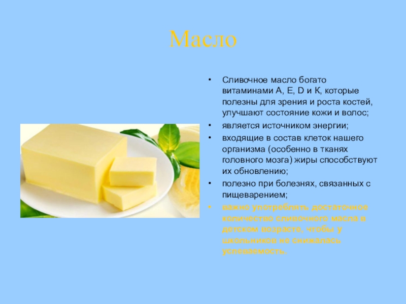 важно употреблять достаточное количество сливочного масла в детском возрасте, чтобы у школьников не снижалась успеваемость.