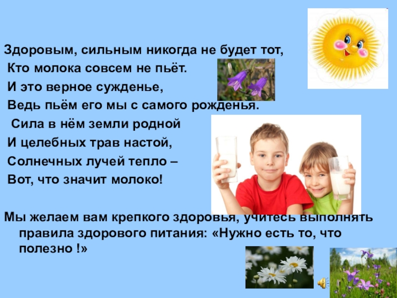 питании, а молоко это натуральный, полезный и вкусный продукт;
