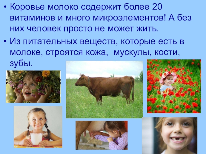 Коровье молоко содержит более 20 витаминов и много микроэлементов! А без