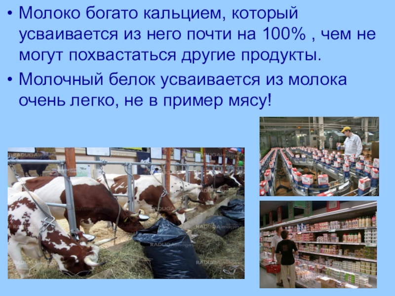 Молоко богато кальцием, который усваивается из него почти на 100% ,