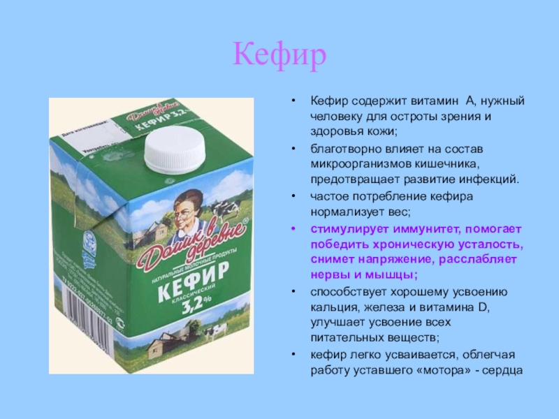 Кефир содержит витамин А, нужный человеку для остроты зрения и здоровья