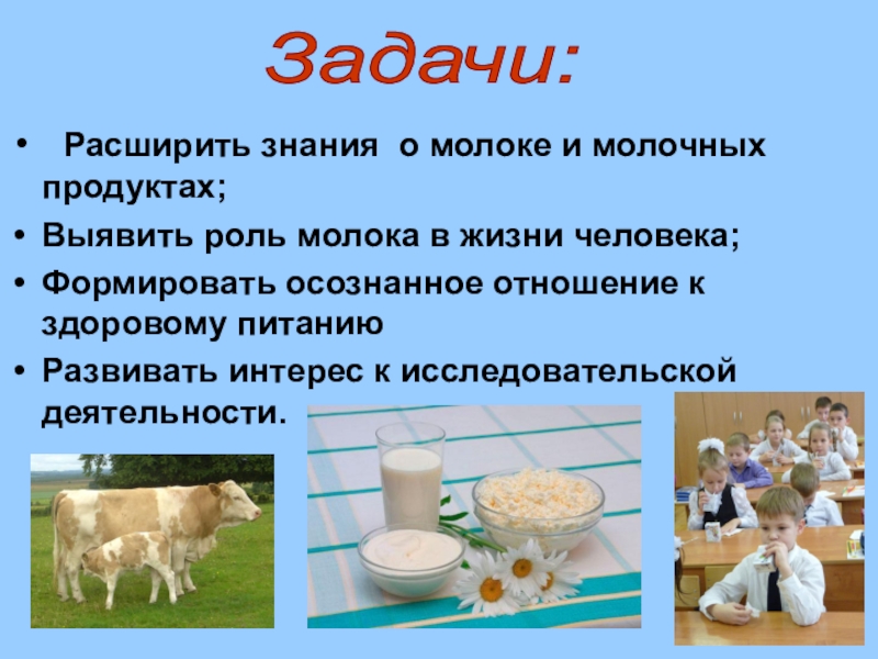 Слайд 5 Расширить знания о молоке и молочных продуктах;