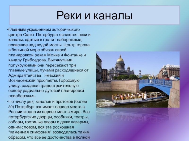 Главным украшением исторического центра Санкт-Петербурга являются реки и каналы,