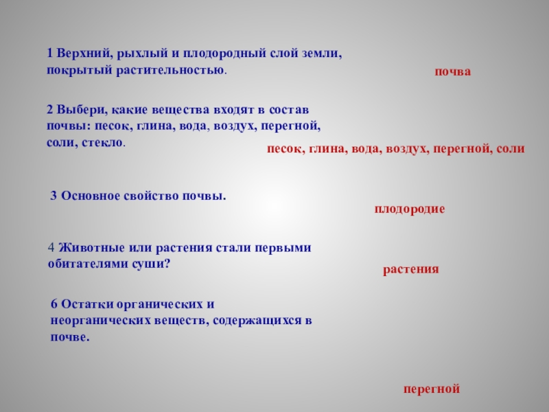 6 Остатки органических и неорганических веществ, содержащихся в почве.