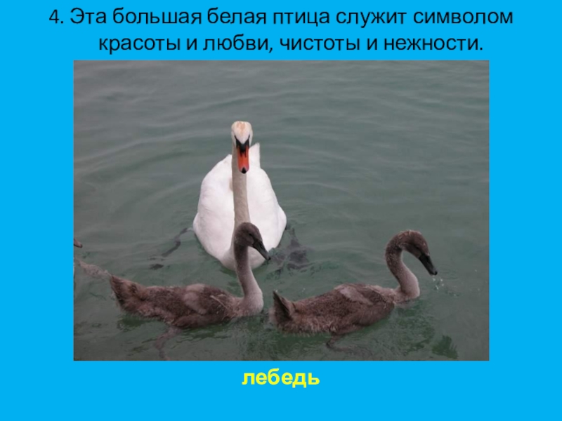 Слайд 164. Эта большая белая птица служит символом красоты и любви, чистоты
