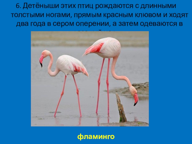 клювом и ходят два года в сером оперении, а затем одеваются в розовый наряд.