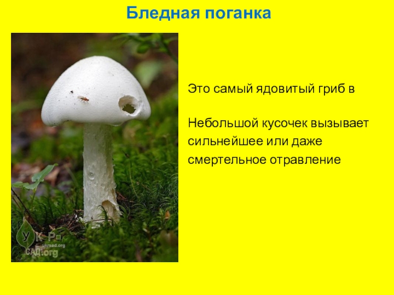 Слайд 6 Бледную поганку иногда называют ложным шампиньоном, т. к. эти грибы