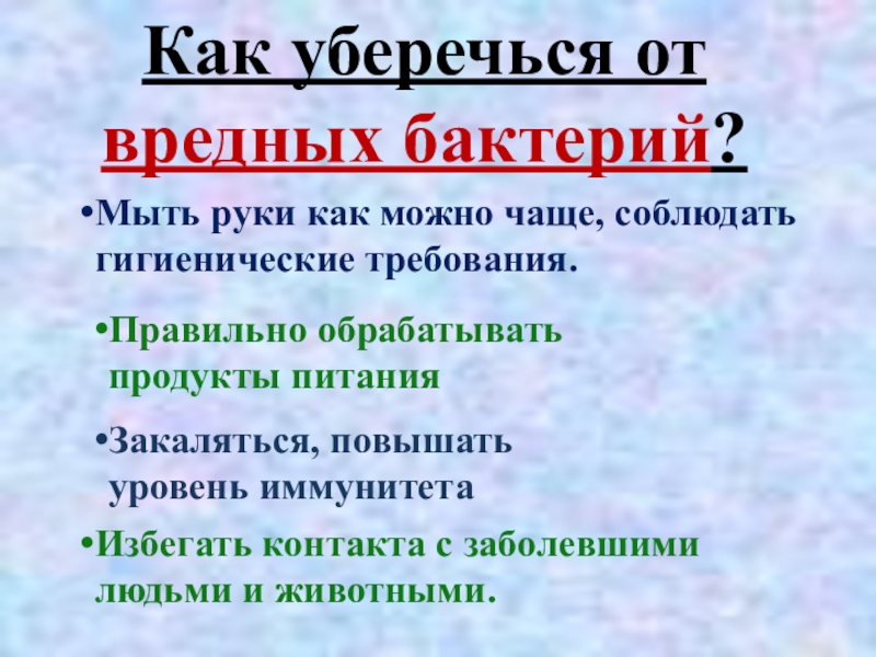 Избегать контакта с заболевшими людьми и животными.