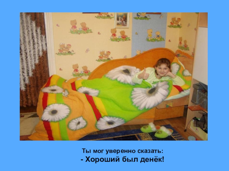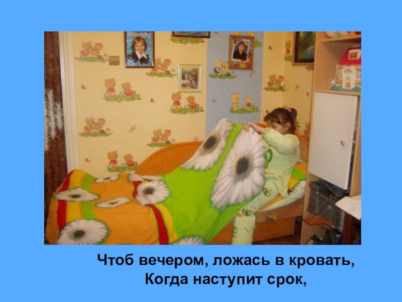 Чтоб вечером, ложась в кровать,Когда наступит срок,