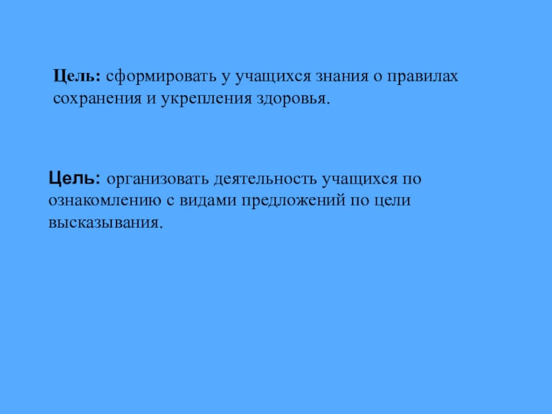 Слайд 3Цель: сформировать у учащихся знания о правилах сохранения и укрепления здоровья.