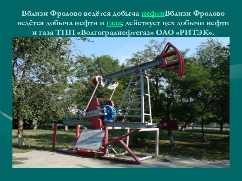 Слайд 13Вблизи Фролово ведётся добыча нефтиВблизи Фролово ведётся добыча нефти и газа;