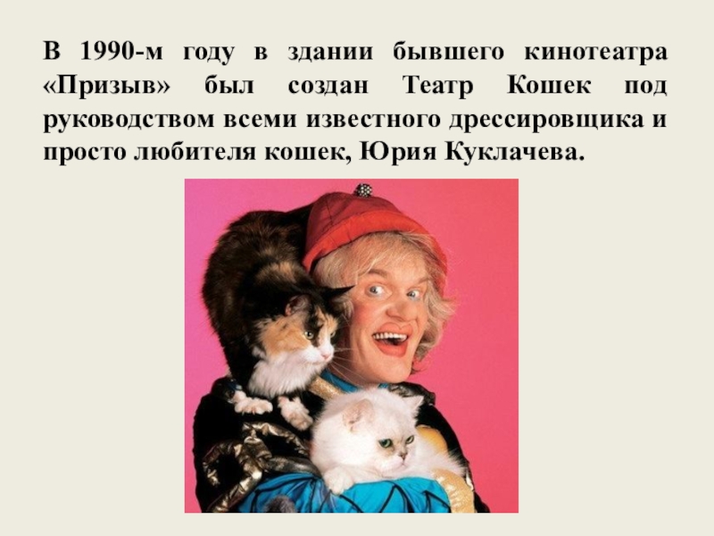 В 1990-м году в здании бывшего кинотеатра «Призыв» был создан Театр Кошек под руководством всеми известного дрессировщика