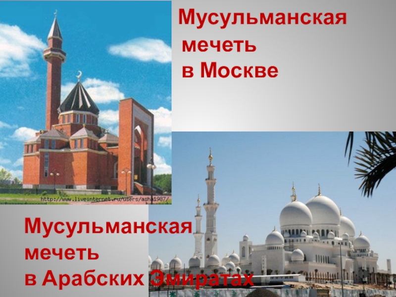 Мусульманская мечеть в Москве Мусульманская мечеть в Арабских Эмиратах