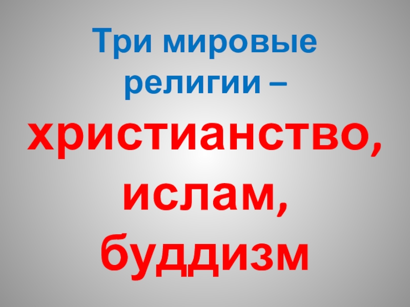 Слайд 10Три мировые религии – христианство, ислам, буддизм