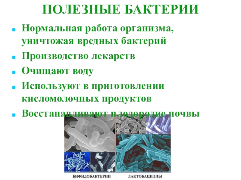 Слайд 11ПОЛЕЗНЫЕ БАКТЕРИИ